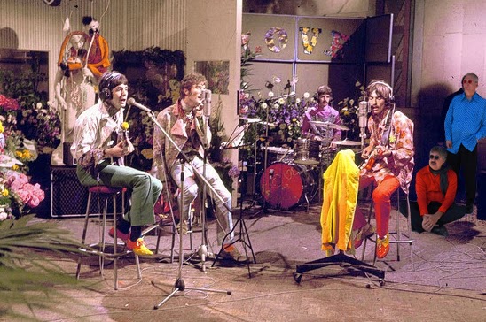8. A través de la primera producción de televisión satelital internacional Our Word, se transmitió, en junio de 1967, para veintiséis países (más de 400 millones de telespectadores) el tema “All You Need Is Love”, tema compuesto, a pedido de la BBC, por The Beatles para que represente al Reino Unido. En agosto de 1967, los Rolling Stones publican su tema “We Love You”, canción que hace recordar algo a “All You Need Is Love” y el video de la canción tiene imágenes que remiten a la transmisión del tema de los Beatles.